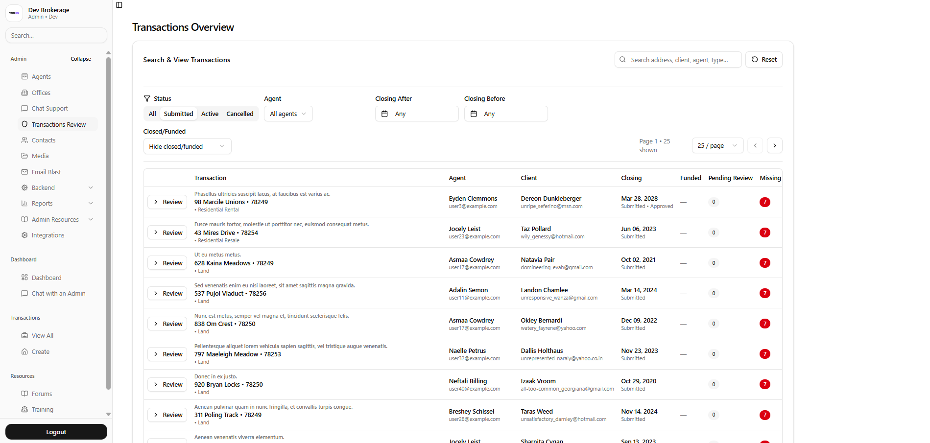 Fast reviews for brokers & admins